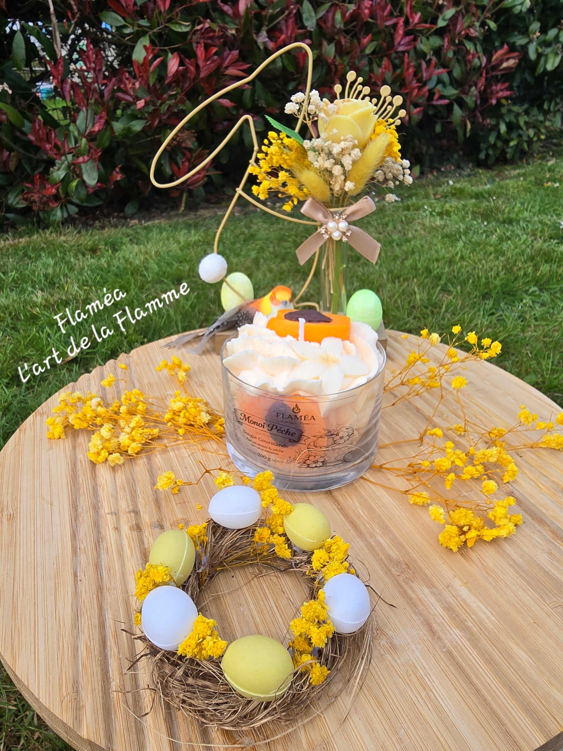 Chez Flaméa L'art de la Flamme, chaque bougie est le fruit d'un travail minutieux et passionné. De la sélection des cires de qualité aux fragrances exquises, en passant par la conception de nos designs uniques, nous mettons tout notre cœur pour créer des bougies qui non seulement illuminent, mais enchantent également vos sens et votre espace.